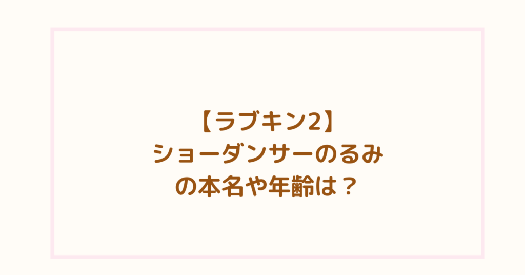 ショーダンサーのるみの本名や年齢は?経歴やプロフィールもまとめ【ラブキン2】
