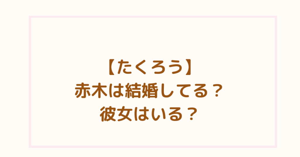 たくろう・赤木は結婚してる?好きなタイプと彼女の有無まとめ