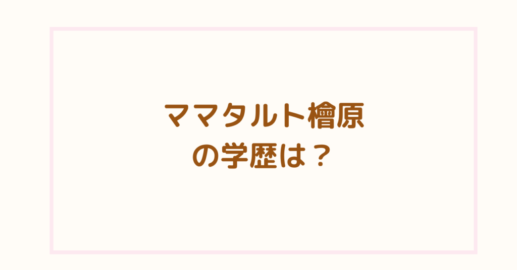 ママタルト檜原の学歴は?出身高校・大学がすごい高学歴芸人だった!