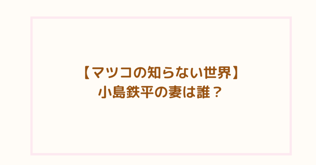 小島鉄平の妻は誰?嫁の顔写真は?小島静乃の職業・経歴などプロフィールまとめ!