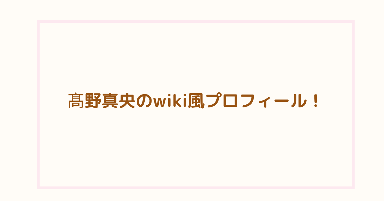そんな、髙野真央さんのwiki風プロフィールを紹介します。