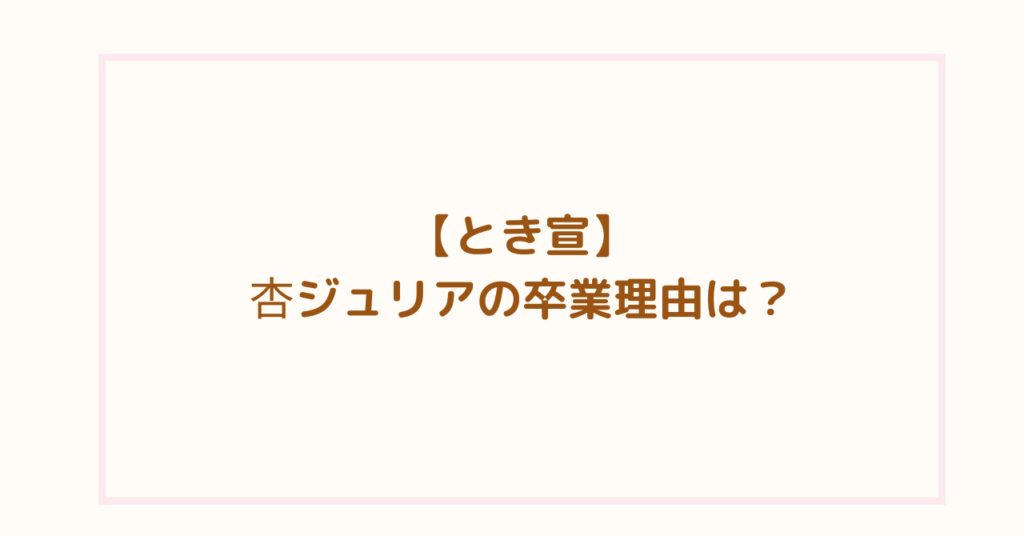 杏ジュリアの卒業理由は?今後の活動についても【とき宣】
