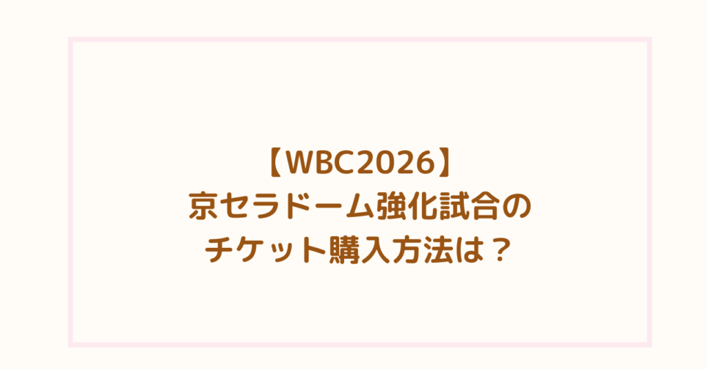 【WBC2026】京セラドーム強化試合のチケット購入方法は?発売日・値段も調査
