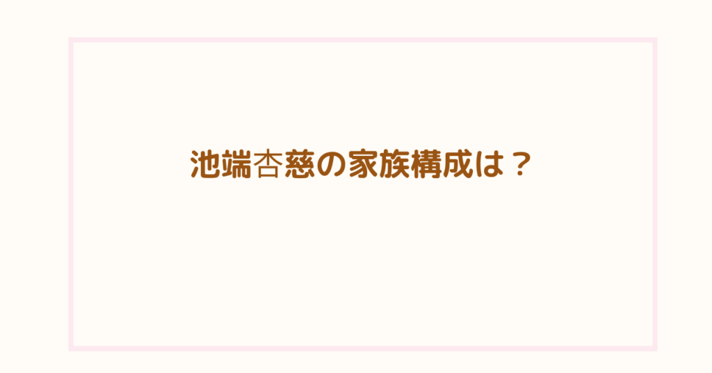 池端杏慈の家族構成は?父親・母親・兄弟のエピソードまとめ!