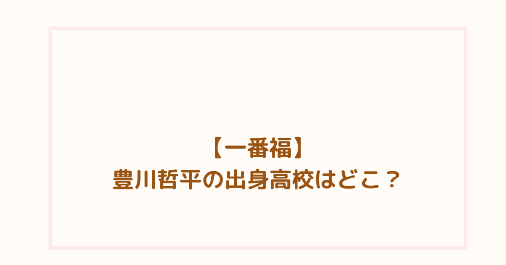 【一番福】豊川哲平の出身高校はどこ?プロフィールや就職先も紹介!