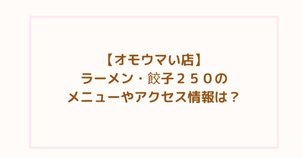 【オモウマい店】水戸250円ラーメン!ラーメン・餃子250のメニューやアクセス情報は?