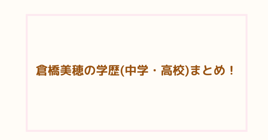 倉橋美穂の学歴(中学・高校)まとめ!かわいいと話題!
