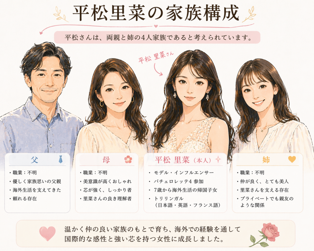 平松里菜さんの家族エピソードについては、具体的な詳細はあまり公開されていませんが、彼女の家族構成や背景からいくつかの情報が得られます。