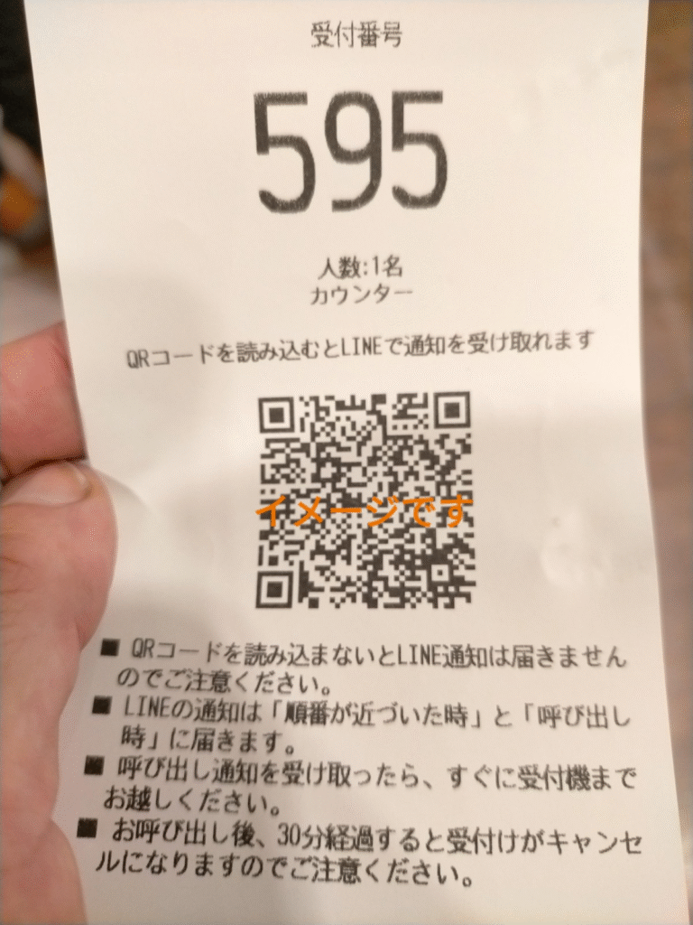 QRコードを読み込むとLINEで、待ち時間を知らせてくれます。