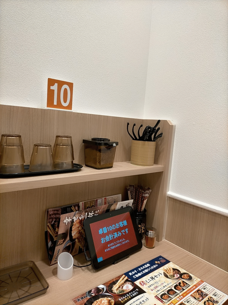 タッチパネルの前には、メニュー表も用意されていますので、ゆっくり商品を選ぶことができます。